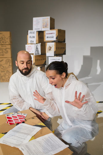 Dois atores têm uma missão: criar um espetáculo.